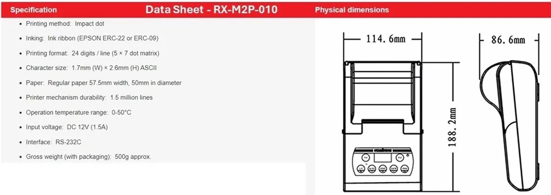 The POINTVALUES Lab Printer (RX-M2K-009 / RX-M2P-010) is a high-speed, impact dot matrix printer designed for ISO/GLP-compliant data output and long-term print preservation. Compatible with a wide range of laboratory instruments—including pH meters, spectrophotometers, titrators, and hardness testers—it supports brands like METTLER, Metrohm, OHAUS, Shimadzu, and more. Features include firmware upgrades, barcode scanner support, real-time clock, sample name and batch input, and multiple connectivity options (RS232, USB, Ethernet). Uses durable ink ribbon and standard paper.