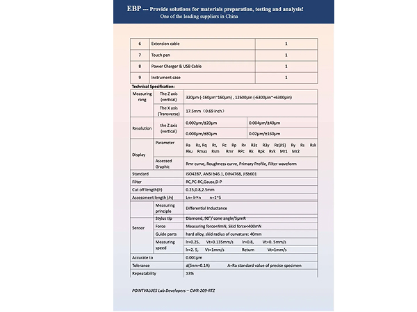 POINTVALUES CWR-209-RTZ Surface Roughness Meter with Printer