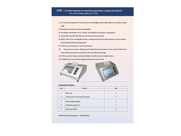 The POINTVALUES CWR-209-RTZ Surface Roughness Meter is a portable, non-destructive tester with an embedded printer, ideal for on-site roughness measurement of metal and non-metal surfaces. Featuring a 3.5″ LCD touchscreen, intuitive interface, and real-time results, it supports ISO, DIN, ANSI, and JIS standards. With a 320μm measuring range (optional 640μm), 50-hour battery life, and 100-sample internal memory, it’s perfect for manufacturing, inspection, and quality control.